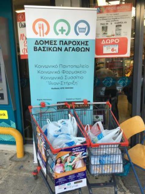 Οι Δομές Παροχής Βασικών αγαθών του Δήμου Ιλίου ευχαριστούν θερμά την εταιρία ΑΒ Βασιλόπουλος, για την παραχώρηση χώρου έμπροσθεν των καταστημάτων τους που στεγάζονται στο Δήμο Ιλίου. Ευχαριστούμε επίσης τον κόσμο του Ιλίου για την θετική του ανταπόκριση και την ευγενική πράξη αλληλεγγύης να ενισχύσει με πλήθος τροφίμων τις κοινωνικές μας δομές. Η δράση συλλογής τροφίμων που πραγματοποιήθηκε στις 8-9 Δεκεμβρίου 2017 & 15-16 Δεκεμβρίου 2017 με σκοπό την ενίσχυση του Κοινωνικού Παντοπωλείου και του Κοινωνικού Συσσιτίου, στέφθηκε με επιτυχία.