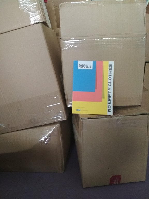 Ειδικότερα, κατόπιν επικοινωνίας του Κοινωνικού Παντοπωλείου με την κα Αγγελοπούλου, εκπρόσωπο του προγράμματος, υπήρξε ενημέρωση για τη διαδικασία και κανονίστηκε συνάντηση για παραλαβή του ρουχισμού. Ο υπεύθυνος της Κοινωνικής Ιματιοθήκης ετοίμασε μεγάλη ποσότητα από κούτες με ρούχα και τις παρέδωσε στους δύο εργαζόμενους του Fabric Republic, οι οποίοι επισκέφτηκαν τον χώρο των Δομών και παρέλαβαν τον ρουχισμό με δικό τους όχημα.